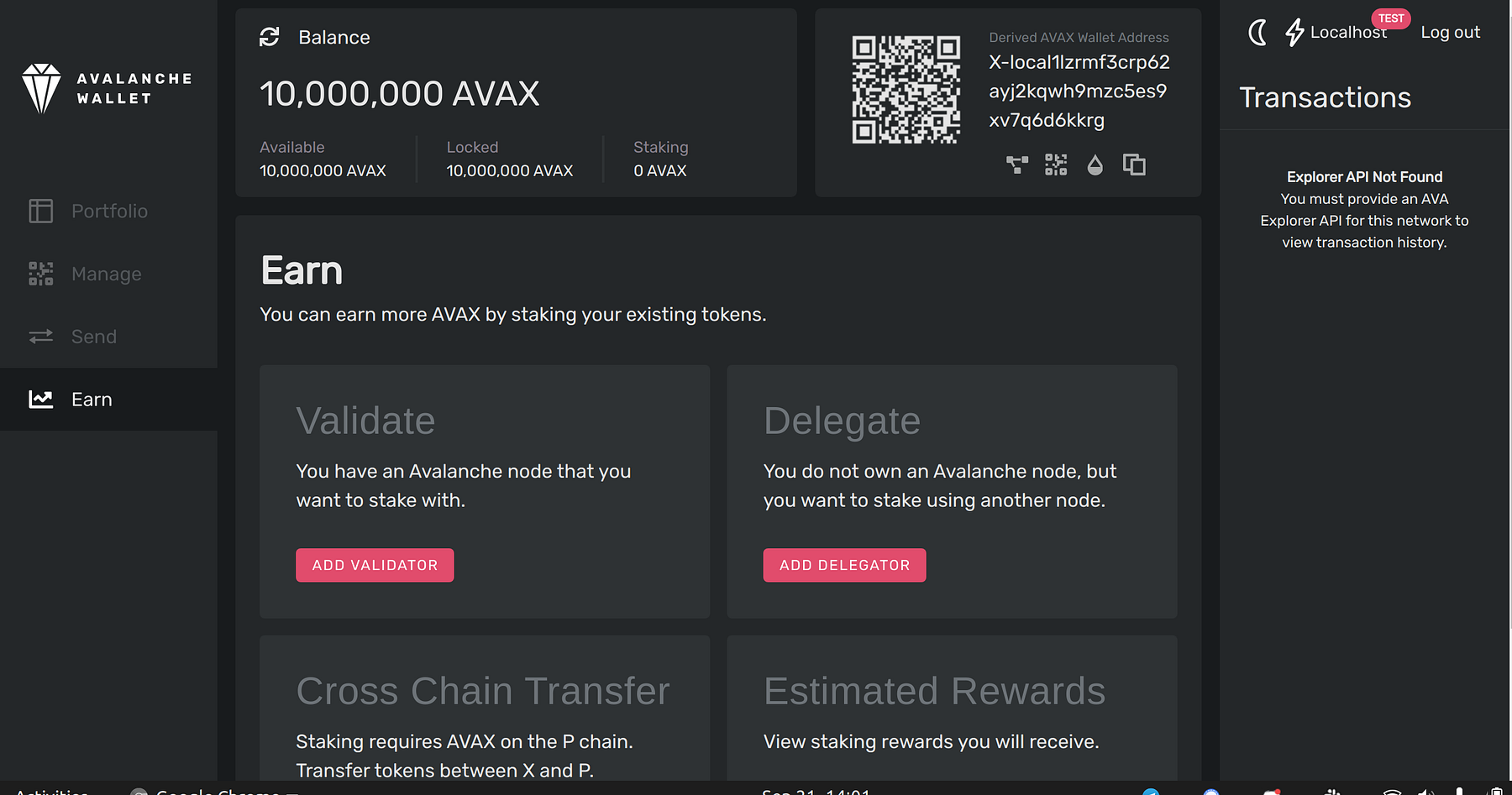 Deux options s'offrent à vous, soit vous posséder au minimum 25 AVAX sur la P-Chain (locked) et dans ce cas là passer directement à l'étape suivante (Add Validator). Soit vous possédez au minimum 25 AVAX sur la X-Chain et vous avez besoin de les transférer sur la P-Chain afin de les staker.