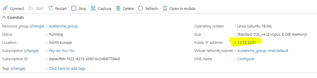 Nous devons maintenant configurer notre nœud Avalanche. Pour ce faire, suivez le didacticiel Configurer le nœud d'avalanche avec le programme d'installation qui automatise le processus d'installation. Vous aurez besoin de «l'adresse IP publique IPv4» copiée à partir du portail Azure que nous avons configuré précédemment.