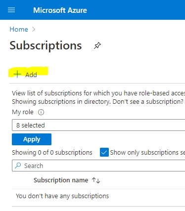 Sélectionnez ensuite “+ Add” pour ajouter un nouvel abonnement
