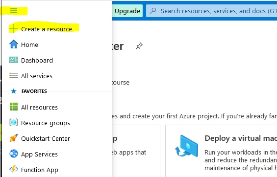 Maintenant que nous avons un abonnement, nous pouvons créer la machine virtuelle Ubuntu pour notre nœud d'avalanche. Sélectionnez l'icône en haut à gauche du menu et choisissez “+ Create a resource”.