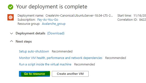 ssh -i C:\Avalanche\Avalanche_key.pem ubuntu@EnterYourAzureIPHere