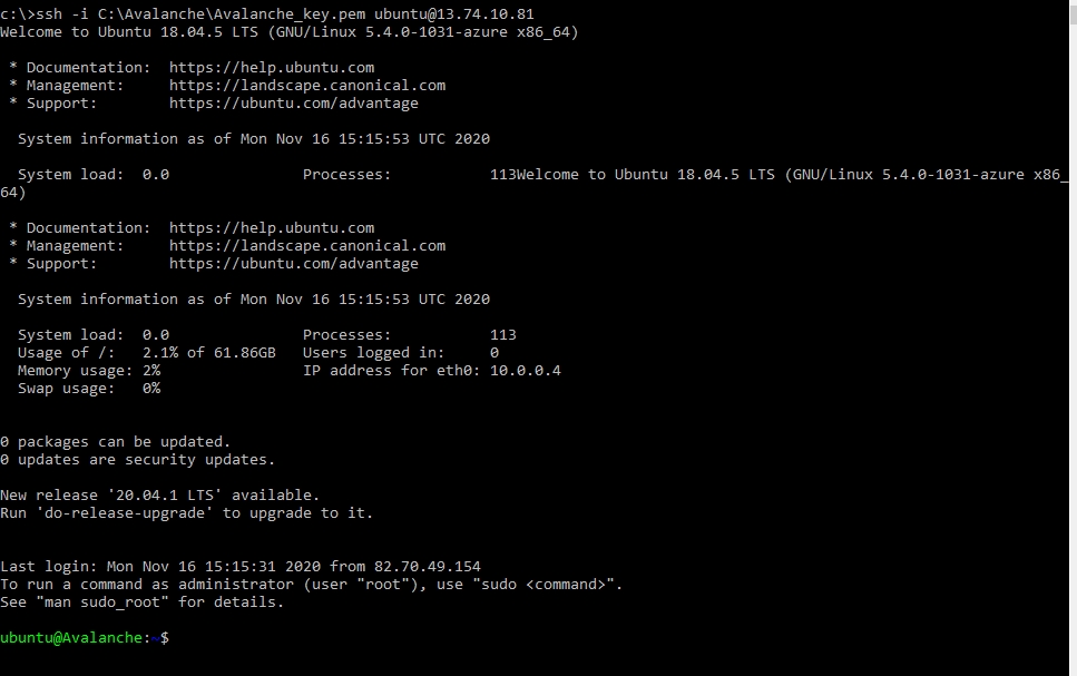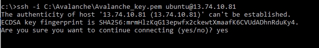 ssh -i C:\Avalanche\Avalanche_key.pem ubuntu@13.74.10.81