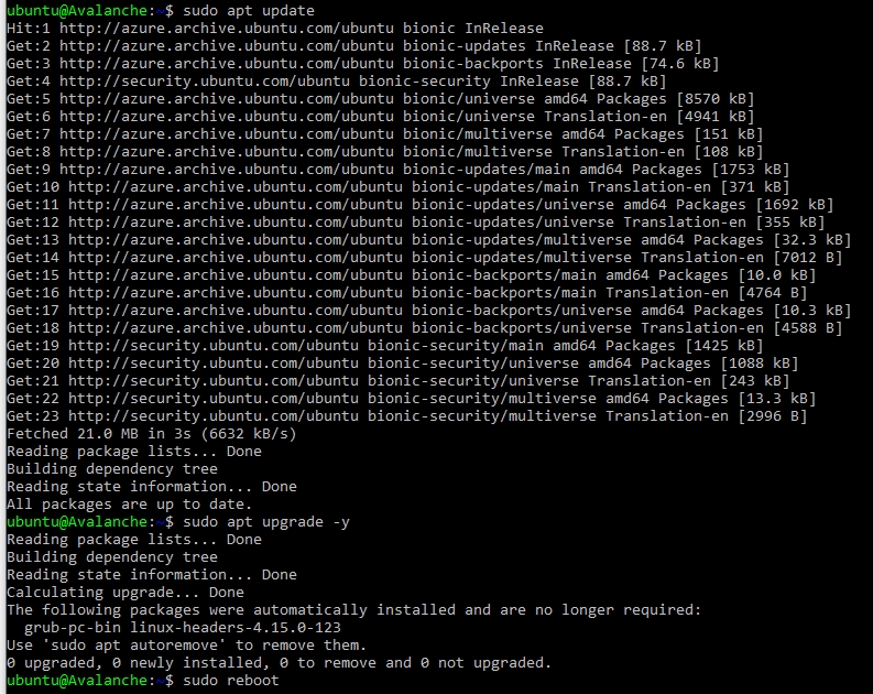 sudo apt updatesudo apt upgrade -ysudo reboot